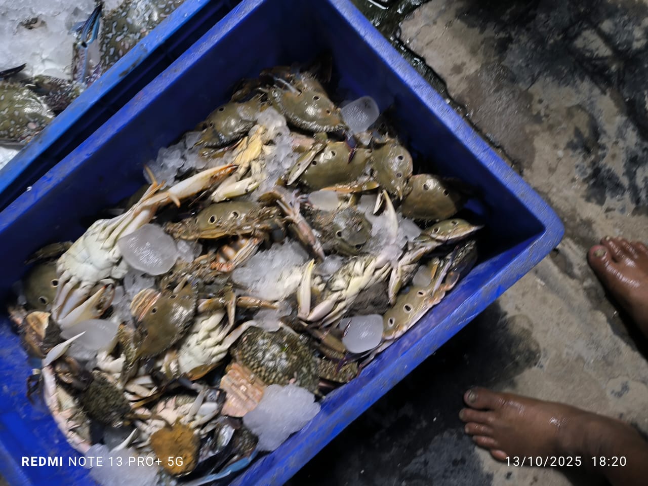 Three Star Crabs are small coastal crabs identified by the three spot markings on their shell. They are commonly used in traditional seafood cooking and are especially popular for spicy crab curries and masala preparations.